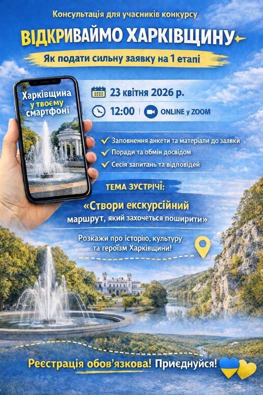 З метою підтримки молодих дослідників та надання практичної допомоги у підготовці проєктів, Обласний комунальний заклад "Харківський організаційно-методичний центр туризму" анонсує проведення практичної онлайн-консультації, яка відбудеться 23 квітня 2026 року о 12:00 на платформі ZOOM.