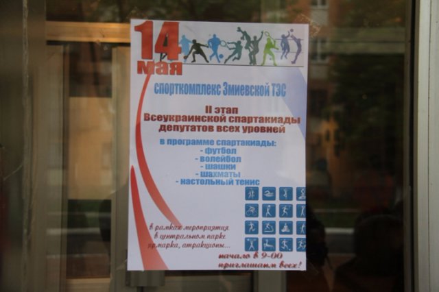 У Зміївському районі завершилася Спартакіада серед депутатів всіх рівнів Харківської області, які змагалися в 5 видах спорту: міні-футбол, волейбол, настільний теніс, шашки та шахи. Незважаючи на складні погодні умови і необхідність грати в міні-футбол на відкритому майданчику при рясному дощі, перше місце в загальнокомандному заліку посіли представники Валківського району, на другому - депутати та голови місцевих рад Сахновщини, замикає трійку лідерів команда Харківського району.